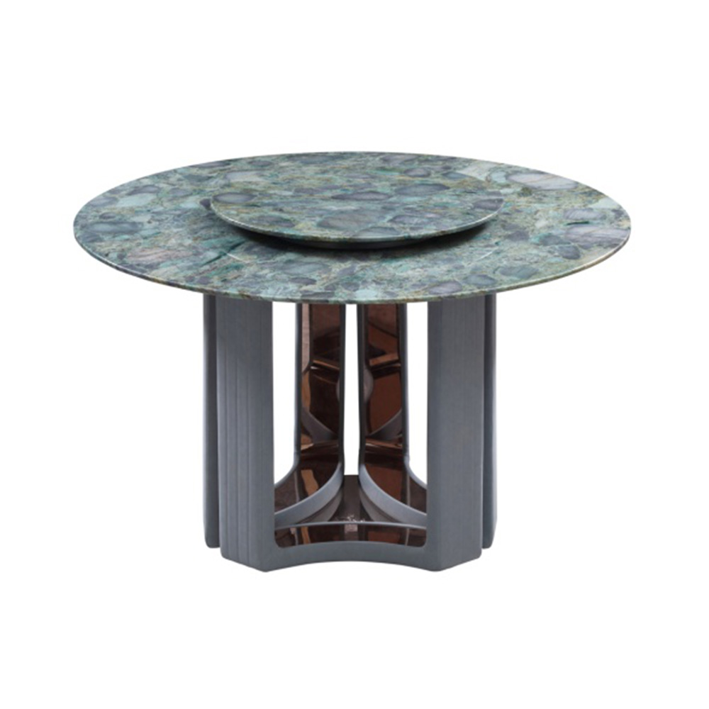 — Элегантный дизайн: Стол выполнен из высококачественного мрамора, который не только привлекает взгляды, но и гарантирует долговечность и устойчивость к повреждениям.