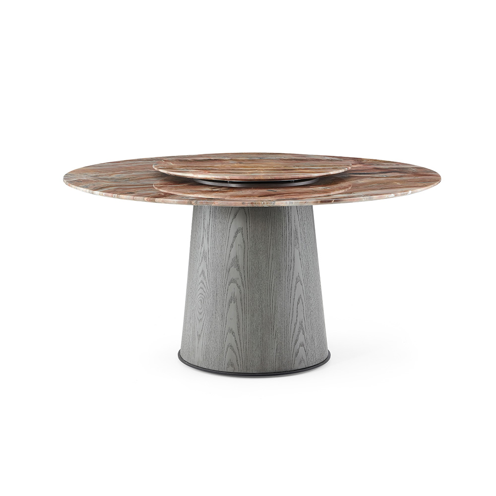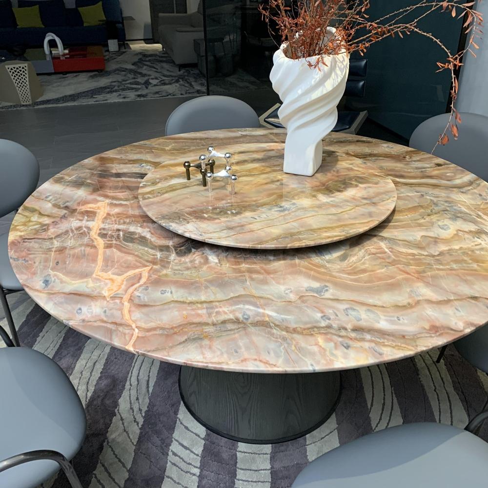 С уникальными мраморными вставками, стол подходит для всех, кто ценит природную красоту и стильный дизайн. Его круглая форма идеально подходит для уютных семейных обедов или уютных встреч с друзьями, создавая атмосферу тепла и единства вокруг стола.