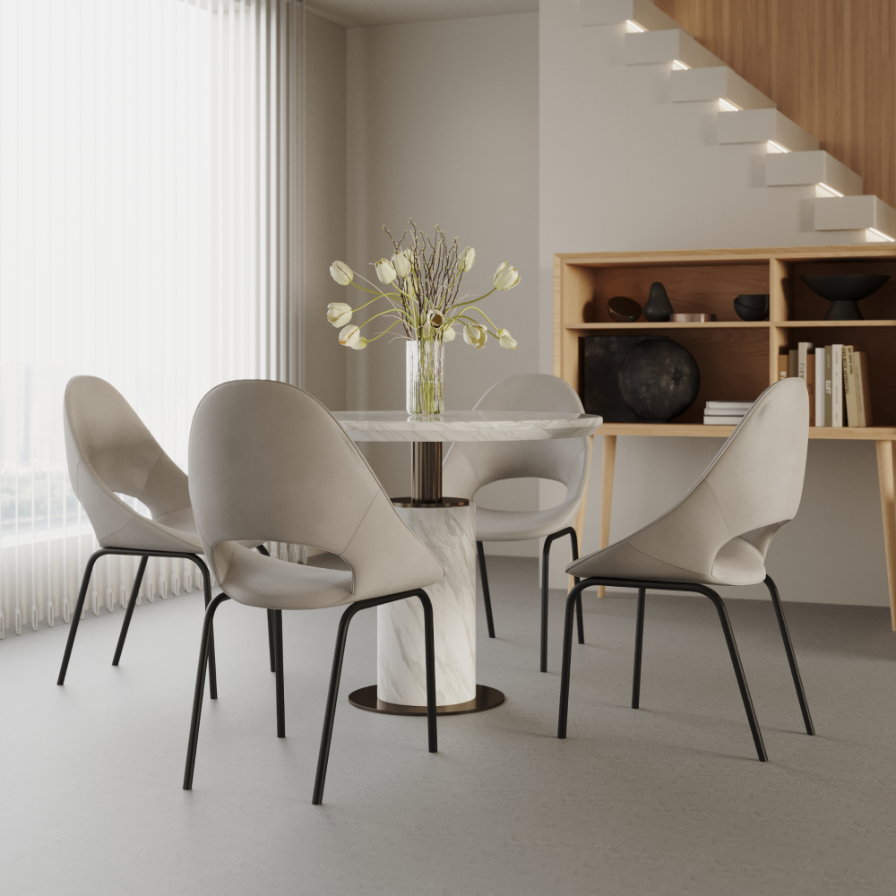 — Круглая форма: Удобная круглая форма идеально подходит для дружеских встреч и семейных обедов, создавая атмосферу общения и тепла. Наслаждайтесь беседами за столом, который стал центром вашего дома.
