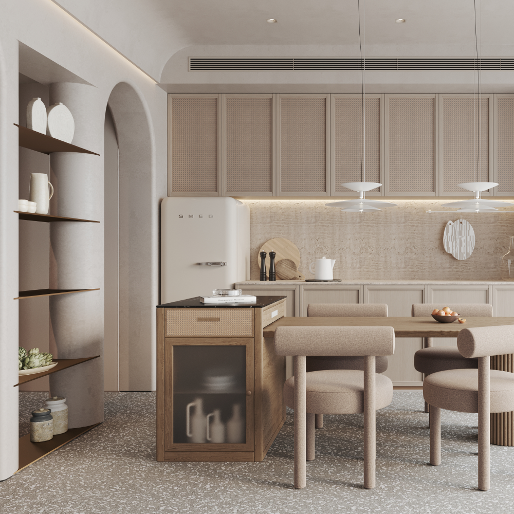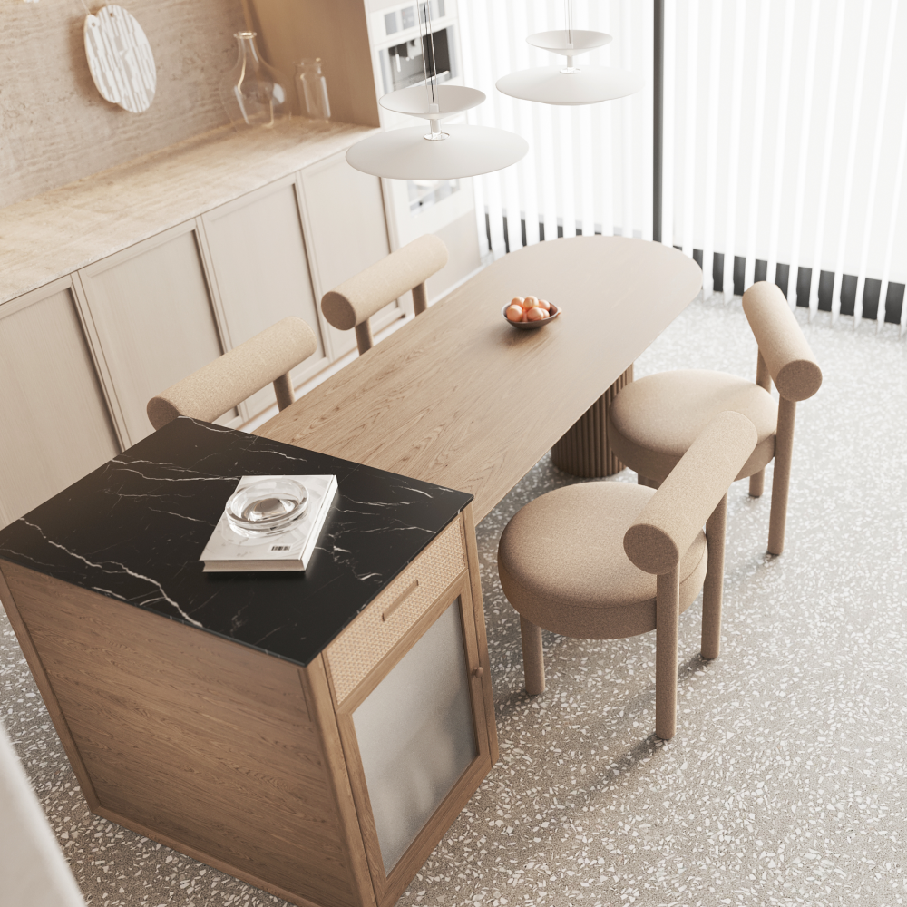 Кухонный или обеденный — стол-остров Atoll Anchor прекрасно подходит для любой ситуации. Здесь можно собираться с семьей за завтраком, проводить вечера с друзьями или готовить кулинарные шедевры, наслаждаясь процессом. Тумба под столом предлагает достаточно места для хранения полезных мелочей, освобождая пространство и поддерживая порядок.