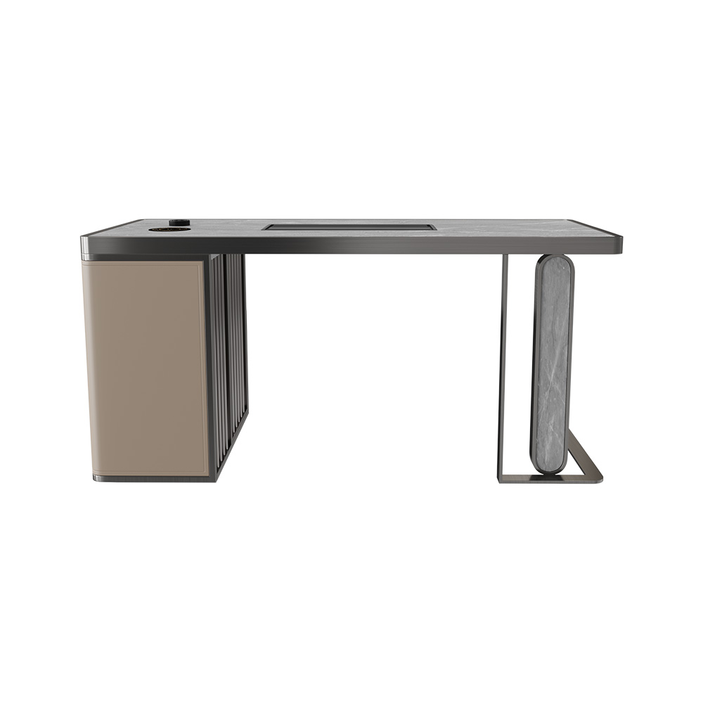 Столешница из спеченого камня не только выглядит впечатляюще, но и покупается на долгие годы – этот материал славится своей устойчивостью к повреждениям и легкостью в уходе. Тонкие линии и современный дизайн делают его идеальным как для уютных домашних обеденных зон, так и для стильных офисов.