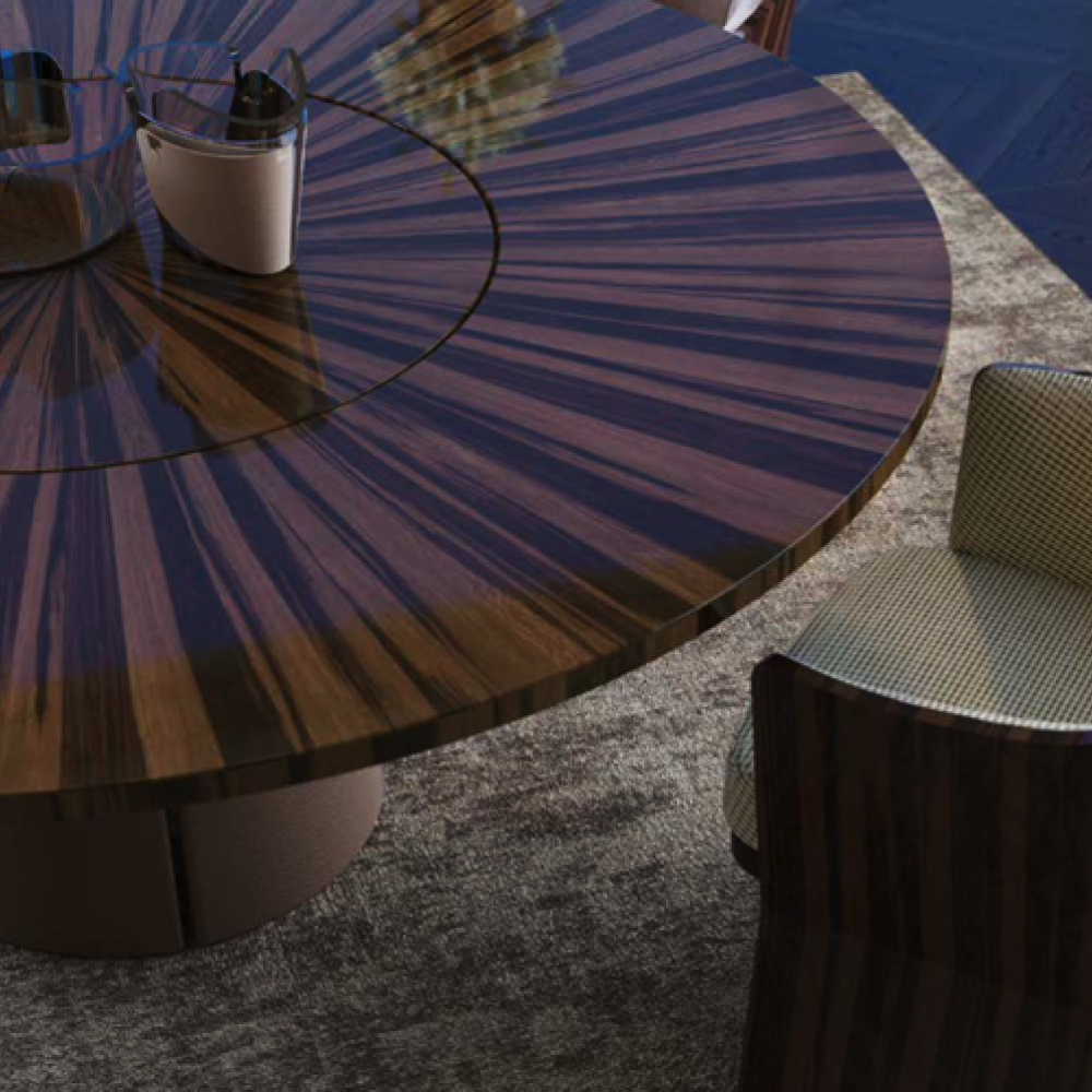 — Просторная поверхность: Широкая столешница достаточно велика, чтобы разместить все необходимые блюда и порции, создавая пространство для общения и наслаждения трапезой.