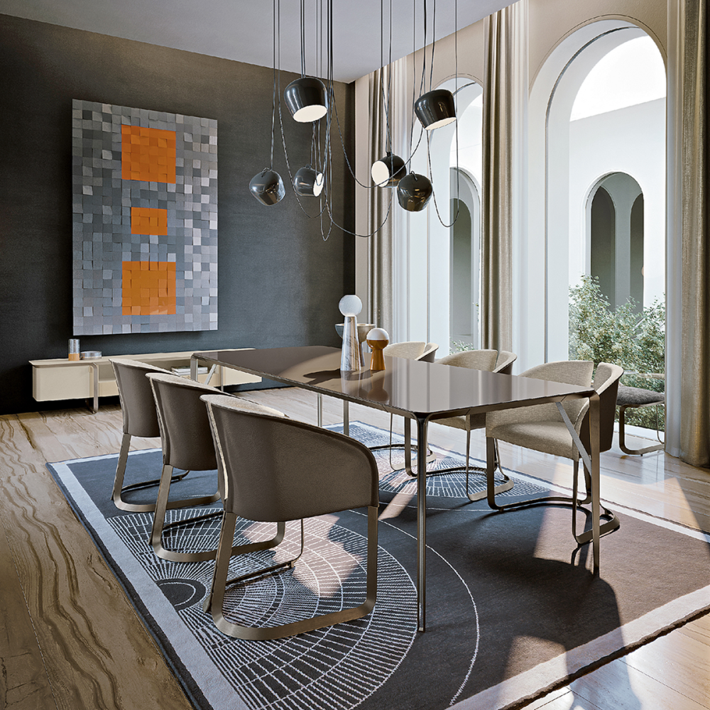 Представляем вашему вниманию обеденный стол с мраморной столешницей Dinos — идеальное сочетание стиля, элегантности и функциональности. Этот стол станет ярким акцентом в вашем интерьере, придавая ему атмосферу роскоши и утонченности.