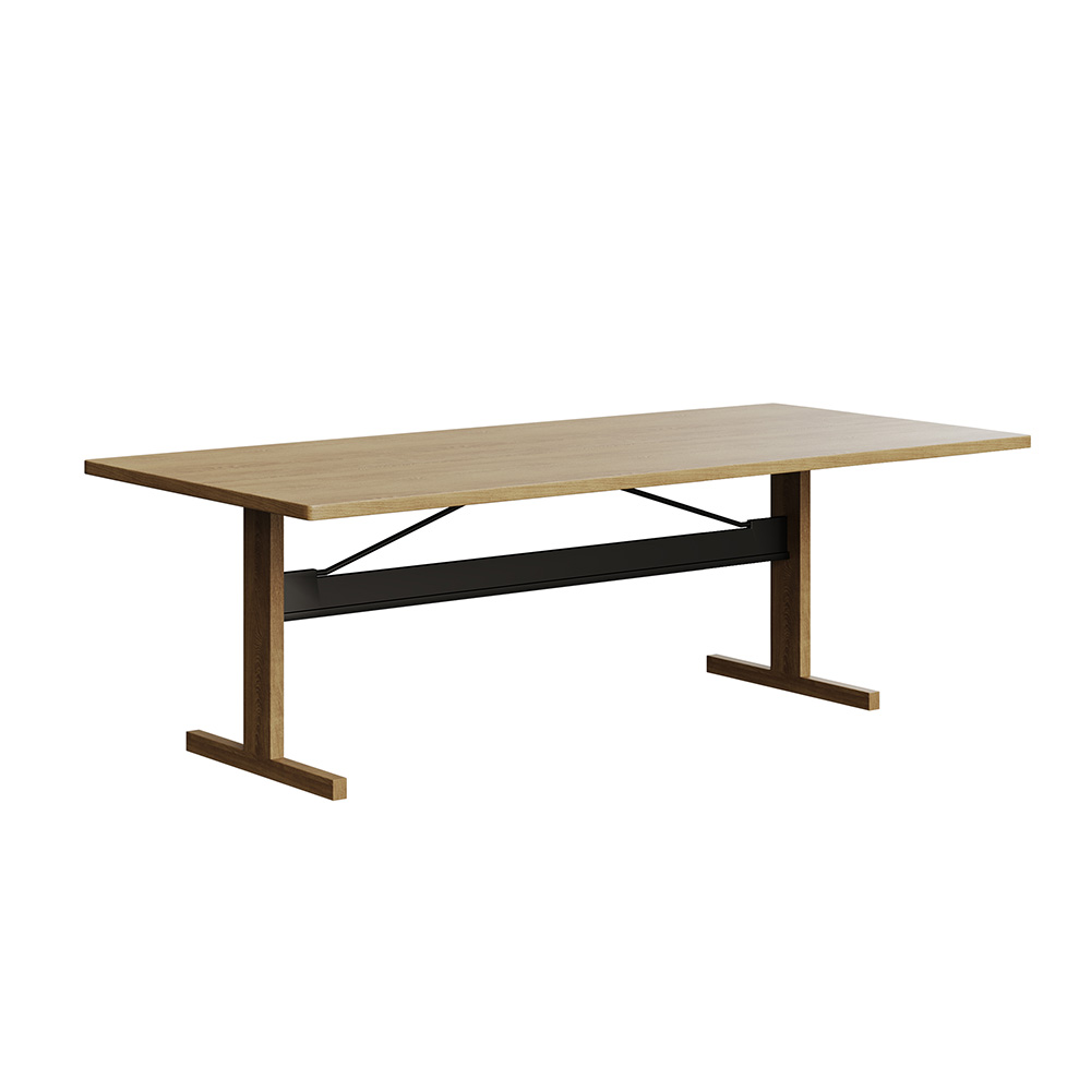 Погрузитесь в мир утонченного минимализма с нашим столом с перекладиной из металла. Этот уникальный предмет мебели умело сочетает в себе прочность углеродистой стали и тепло ясеневого шпона, что делает его идеальным центром вашего кухонного или обеденного пространства.