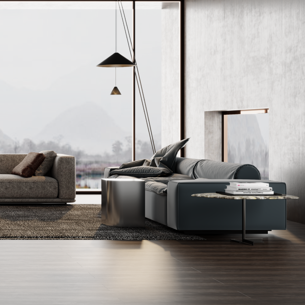 Прямоугольный стол из мрамора и вставкой из стали Bircham