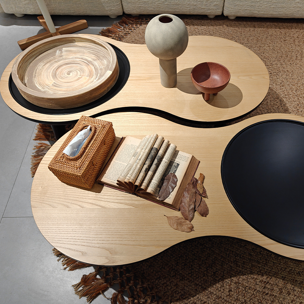 — Уникальный дизайн: Столик выделяется свободными формами и органичными линиями, что делает его не просто предметом мебели, а настоящим арт-объектом.