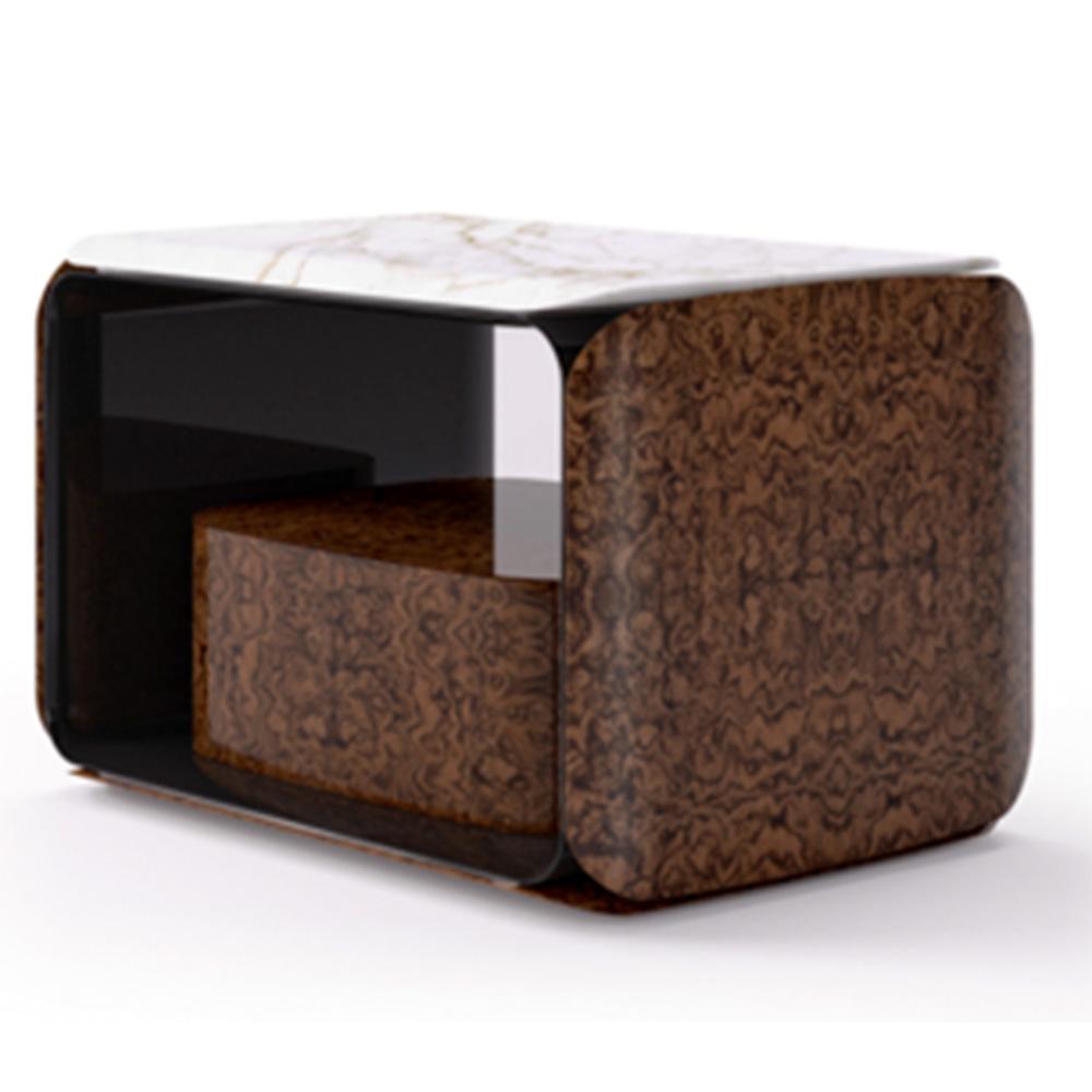 Представляем вашему вниманию прикроватный столик Lelant, который станет изюминкой вашего интерьера. Этот элегантный столик сочетает в себе неповторимую красоту натурального мрамора и качественного шпона, создавая гармоничное единство стиля и функциональности.
