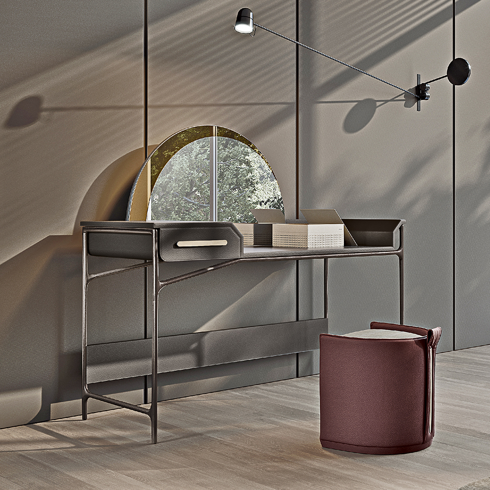 Погрузитесь в мир элегантности с туалетным столиком Rauros, который станет неотъемлемой частью вашего интерьера и ежедневного ритуала ухода за собой. Этот стильный столик сочетает в себе современный дизайн и практичность, идеально подходя для тех, кто ценит качество и эстетику.