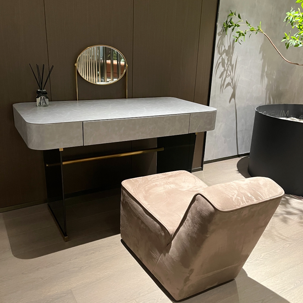 Погрузитесь в атмосферу элегантности с туалетным столиком Noel — шикарным дополнением для вашей спальни или ванной комнаты. Этот изысканный столик, оснащённый зеркалом, не только станет функциональным предметом мебели, но и привлечёт восхищенные взгляды благодаря своему утончённому дизайну.