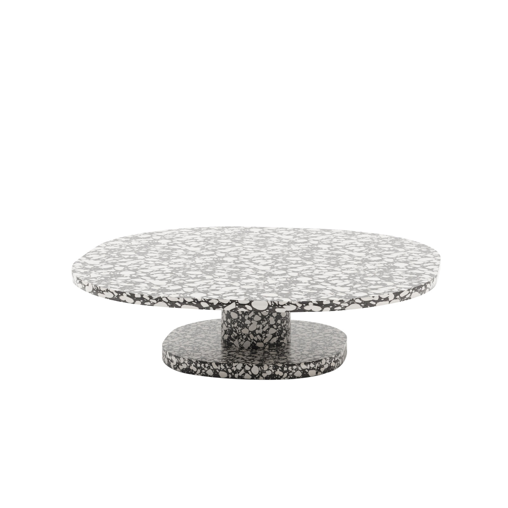 Изготавливаемый из высококачественного терраццо, столик не только привлекает взгляд своей уникальной текстурой и цветовой гаммой, но и отличается прочностью и долговечностью. Каждый экземпляр является неповторимым произведением искусства благодаря разнообразию включений, что делает его идеальным выбором для тех, кто ценит индивидуальность.