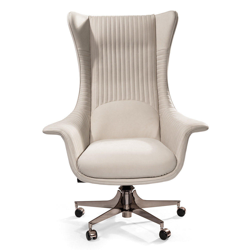 — Выбор материалов: Стул доступен в двух премиальных вариантах обивки: натуральная кожа, которая придаст вашему офису роскошь и изящество, и экокожа на основе микрофибры, обеспечивающая прочность и легкий уход.