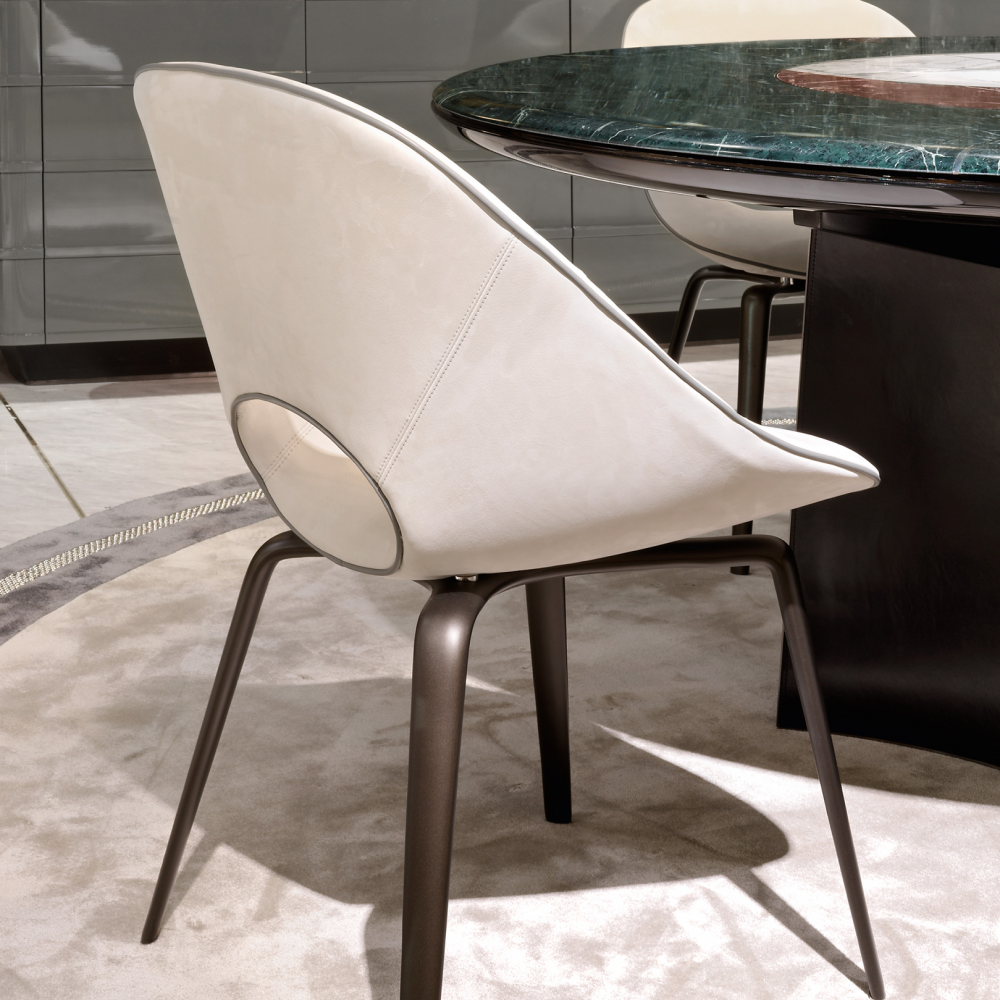 Основное преимущество стула — его обивка из натуральной кожи и экокожи на основе микрофибры. Выбирая между этими двумя вариантами, вы получаете возможность выбрать материал, который идеально впишется в вашу обстановку. Натуральная кожа придает стулу роскошный вид и обеспечивает долговечность, в то время как экокожа не менее привлекательна, но более устойчива к механическим повреждениям и легка в уходе.