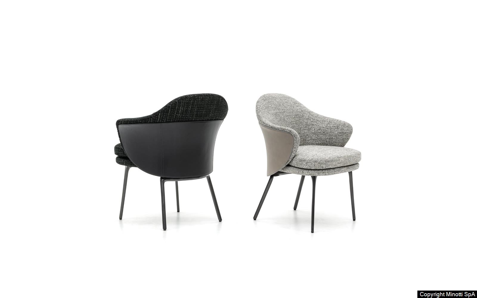 Элемент из кожи образует крыло, охватывающее кресло, поддерживающее каркас, как скульптурное бюст, характеризующееся внутри манящей мягкостью сиденья и спинки. За кажущейся простотой конструкции скрывается передовой технологический процесс изготовления как набивки из пенопласта различной текстуры, так и седловой кожи, изготовленной с использованием двух разных форм Baydur®, которые идеально повторяют изогнутую линию кресла.