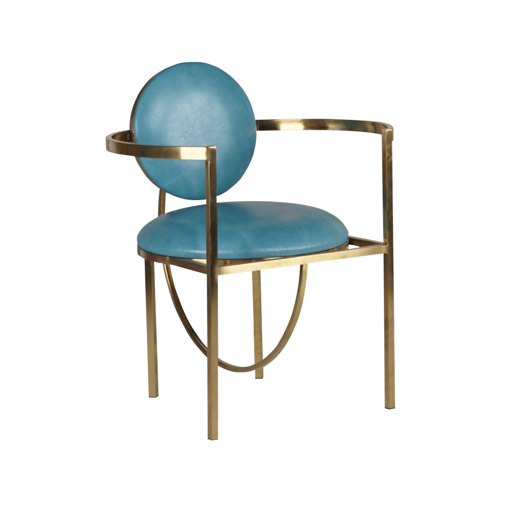 Лофт-стул Sphere Blue Gold Base относит нас в далекое прошлое первооткрывателей. Современный стул с элементами старины сделает в комнате яркий акцент. Каркас из нержавеющей стали в золотом цвете и приятного, натурального цвета обивка из коровьей кожи отлично сочетаются. Округлые формы каркаса и круглая спинка с сиденьем смягчают стиль мебели, делают его изящным. Помимо визуальной красоты, вы получите комфорт и надежность.