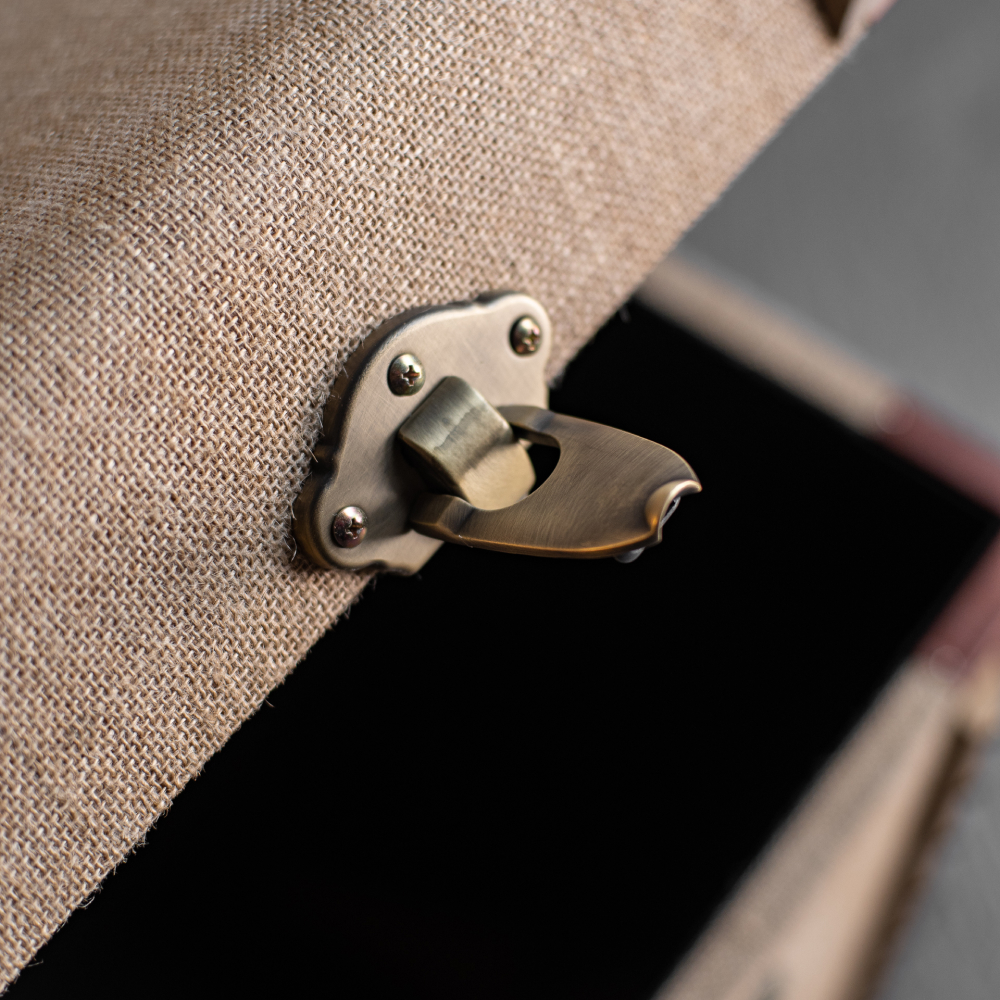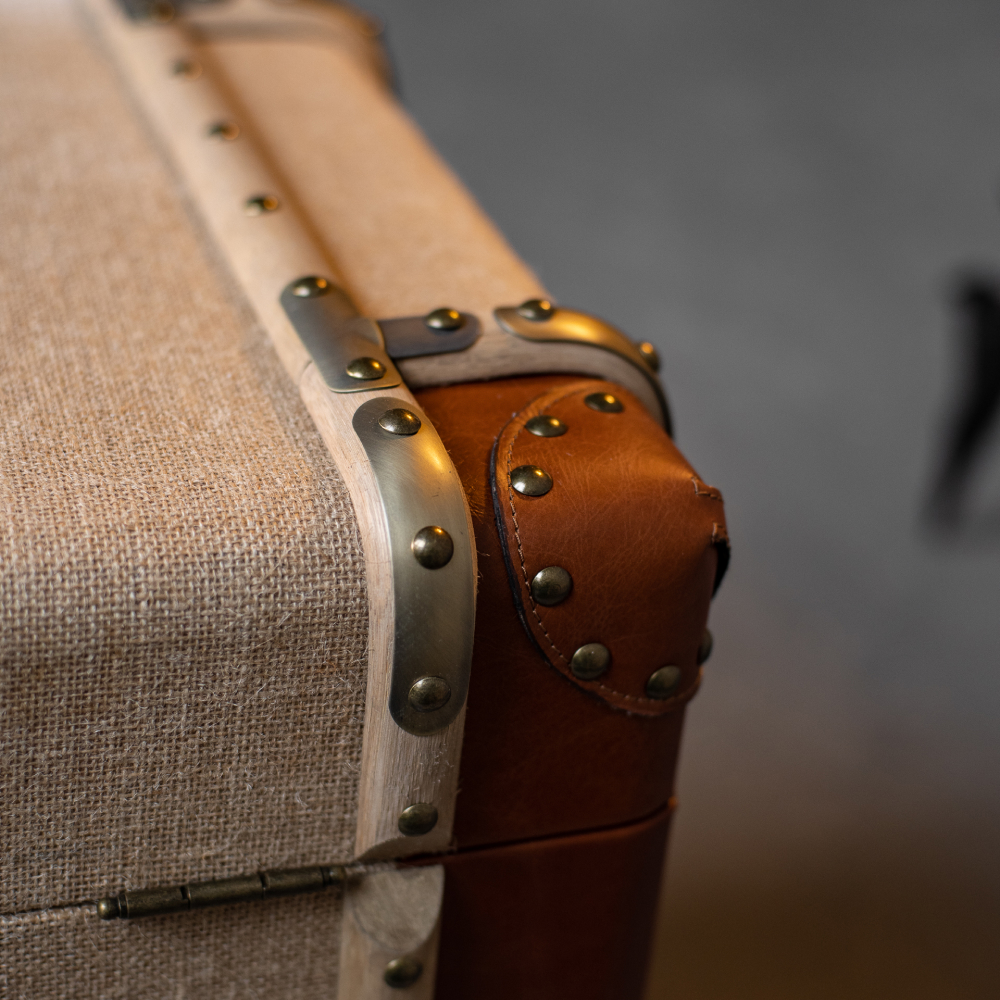 Изготовленный из прочного деревянного каркаса, он покрыт изысканным льняным полотно, добавляющим текстурное богатство и естественность. Уникальная отделка из тончайшей кожи и акценты из цельного дерева с латунными элементами придают изделию роскошный вид и долговечность. Каждый компонент используется с тщательностью, чтобы создать идеальное сочетание стиля и практичности.
