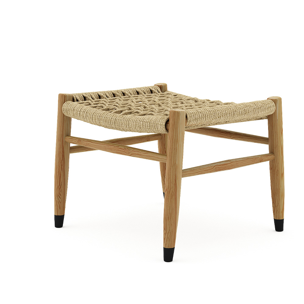 Обивка выполнена из плетеной веревки, которая добавляет изделию текстурированность и оригинальность. Благодаря ручной работе, каждый табурет уникален, сочетая в себе элементы природы и искусного мастерства. Этот табурет идеально впишется в концепцию Wabi-Sabi — философию, ищущую красоту в несовершенстве и естественном.
