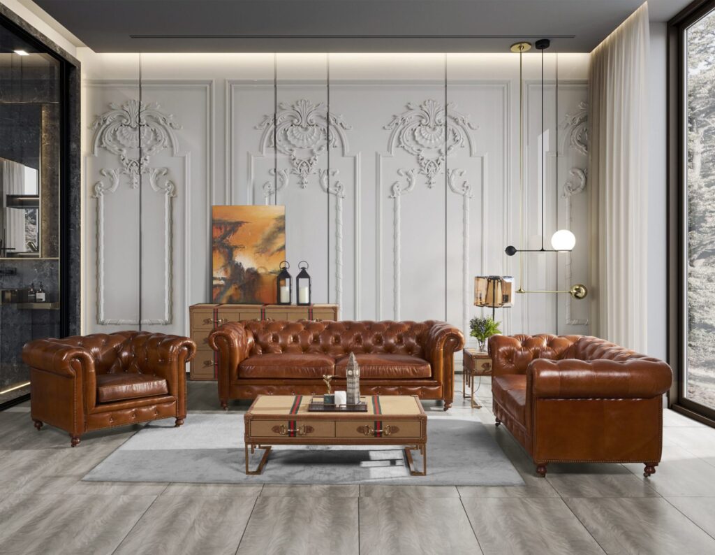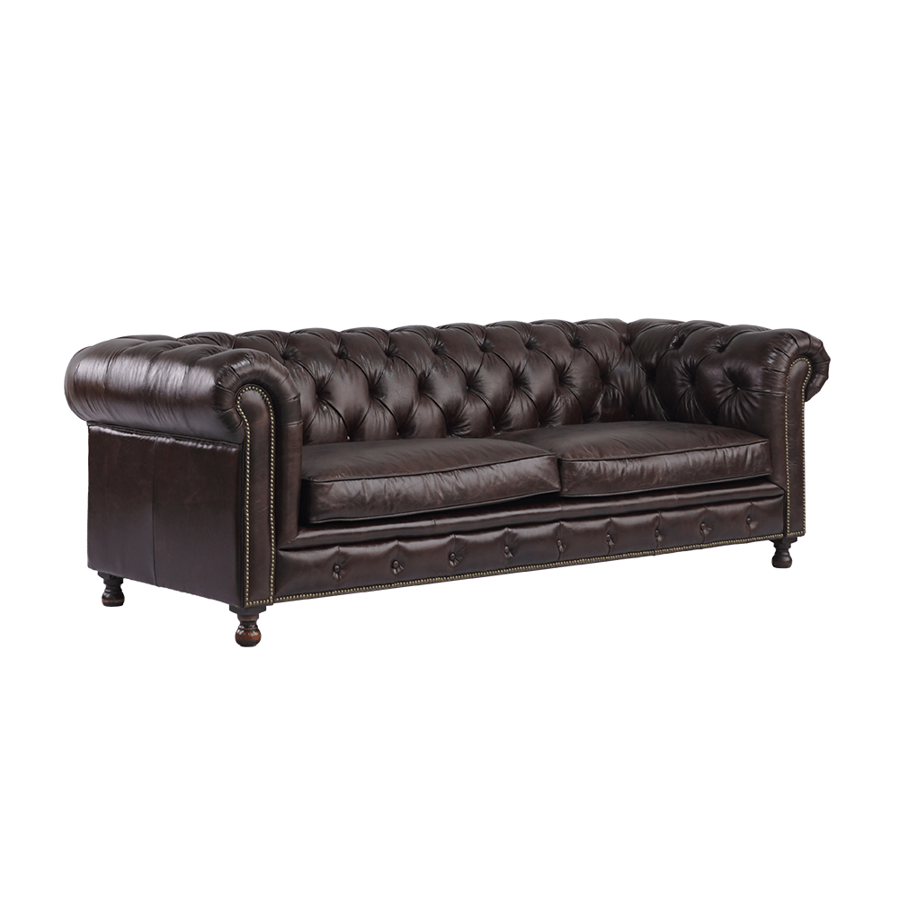 Вдохновленный атмосферой современного лофта, этот диван станет настоящим украшением вашей гостиной. Его прочный каркас из лиственницы и массивные деревянные ножки гарантируют долговечность и надежность, а элегантная обивка из коровьей кожи top grain придаст интерьеру особый шарм и роскошь. Каждая деталь продумана до мелочей: изысканные латунные гвоздики подчеркивают стильный дизайн и придают модели уникальность.