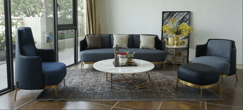 — Прочный каркас: Основание дивана изготовлено из лиственницы и украшено золотистыми деталями из нержавеющей стали, обеспечивающими долговечность и надежность.