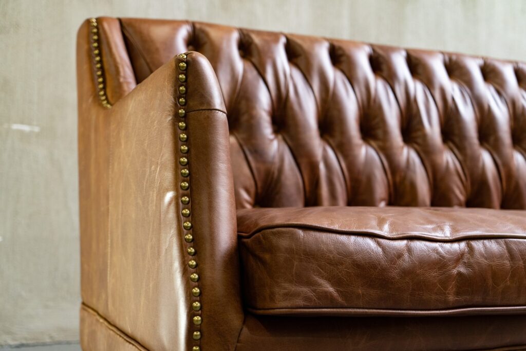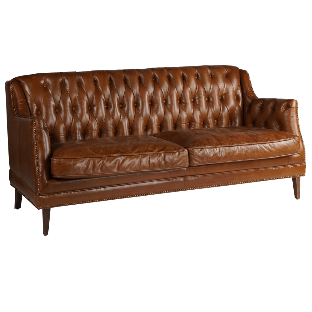 Изготовленный из высококачественных материалов, диван Royal обладает прочным каркасом из лиственницы и массивными деревянными ножками, которые обеспечивают ему надежность и устойчивость. Его обивка выполнена из премиальной коровьей кожи top grain, которая приятно на ощупь и создаёт атмосферу роскоши в вашем интерьере. Изящные латунные гвоздики вдоль сидений добавляют особый шик, подчеркивая стильный облик дивана.