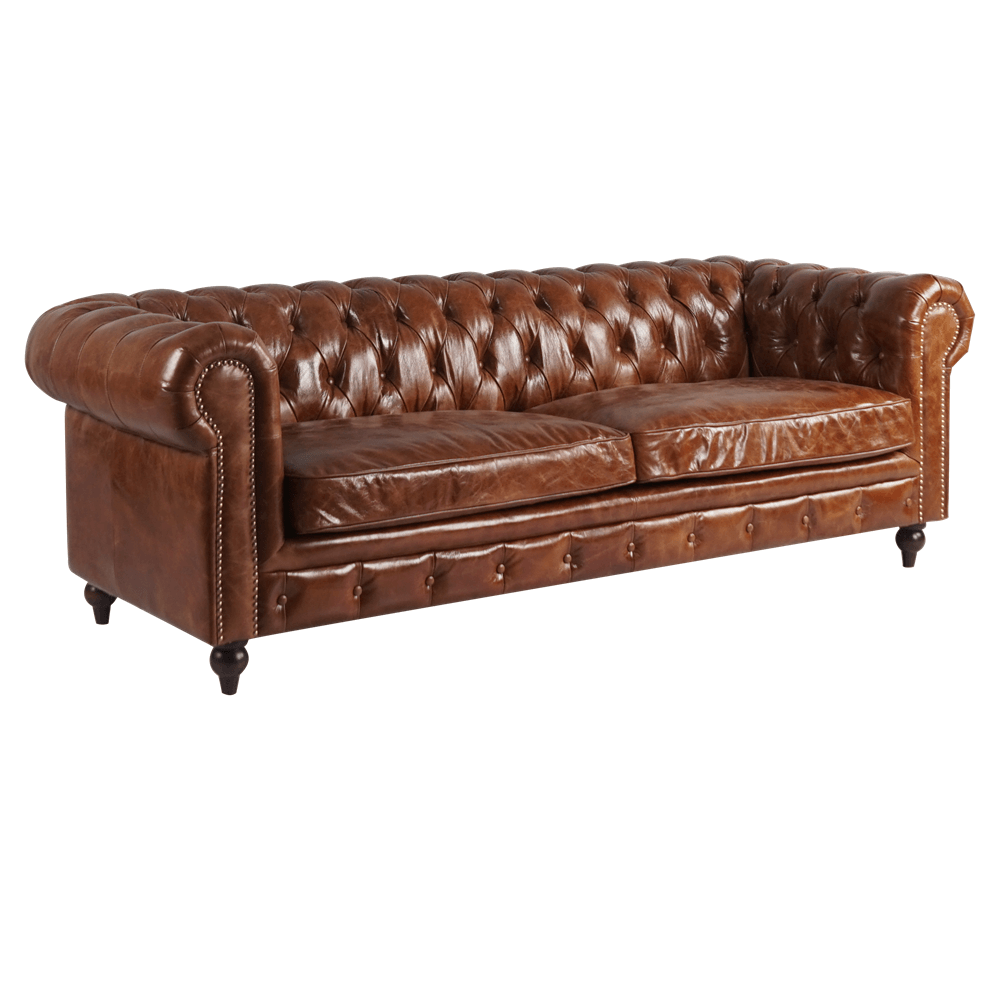 Произведённый с использованием высококачественных материалов, диван «Steampunk» имеет прочный каркас из лиственницы, обеспечивающий надежность и долговечность. Ножки из массива дерева придают ему стабильность и добавляют нотку элегантности. А обивка из коровьей кожи Top Grain дарит вам невероятное ощущение роскоши при каждом сидении. Латунные гвоздики, аккуратно подчеркивающие линии дивана, добавляют особую изюминку и шарм, создавая эффектный контраст с текстурой кожи.