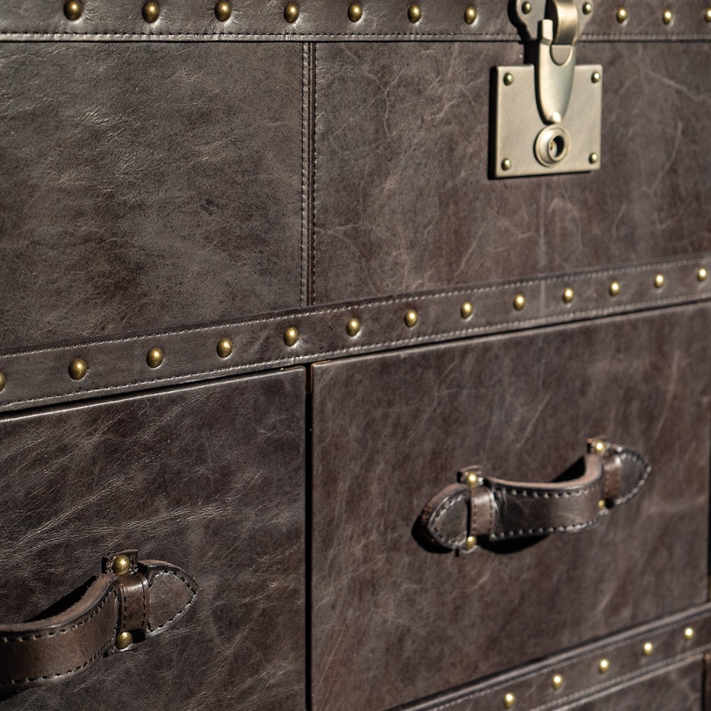 Созданная в духе современного лофтового стиля, тумба станет великолепным акцентом в любом интерьере, будь то уютная квартира или стильный офис. Её элегантные линии и уникальный дизайн моментально привлекают внимание, а обивка из натуральной кожи придаёт особый шик и уют.