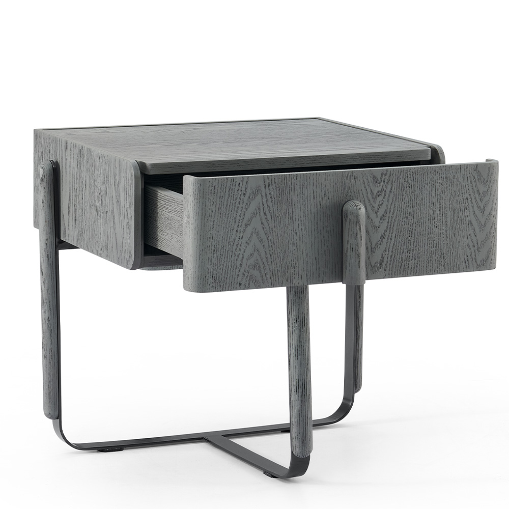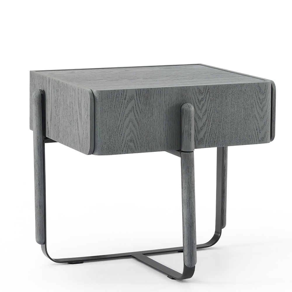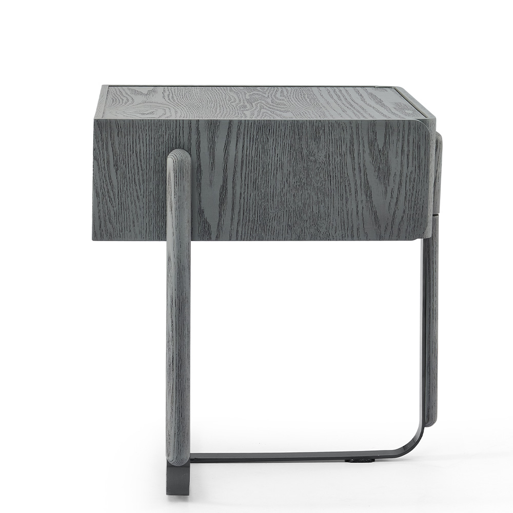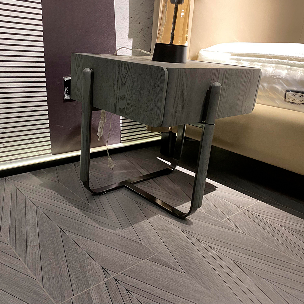 Эта элегантная прикроватная тумба выполнена из качественных материалов, таких как ясенеый шпон, ЛДСП Е1 и нержавеющая сталь, что гарантирует долговечность и надежность. Высокие ножки придают изделию легкость и современный вид, а также облегчают уборку под тумбой.