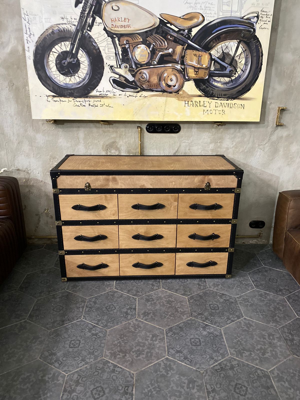 Изготовленная из качественных материалов, тумба Onyx сочетает в себе прочный деревообивной каркас, стильную отделку из натуральной кожи и латунных элементов, а также элементы из массива дерева, обрамленные заякоренной черной нержавеющей сталью. Это позволяет создать гармоничное сочетание современного и индустриального стиля, способное вдохновлять и восхищать.