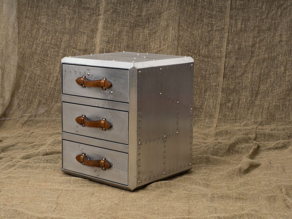 Тумба Pilot Aluminum 3 Drawer в прихожие лофт в стиле лофт наповал сражает дизайнерскими находками. Это тематическая мебель, которая продолжает тему авиаторов-первопроходцев.