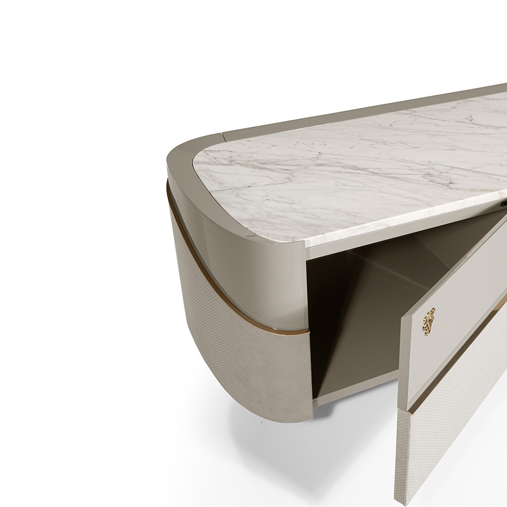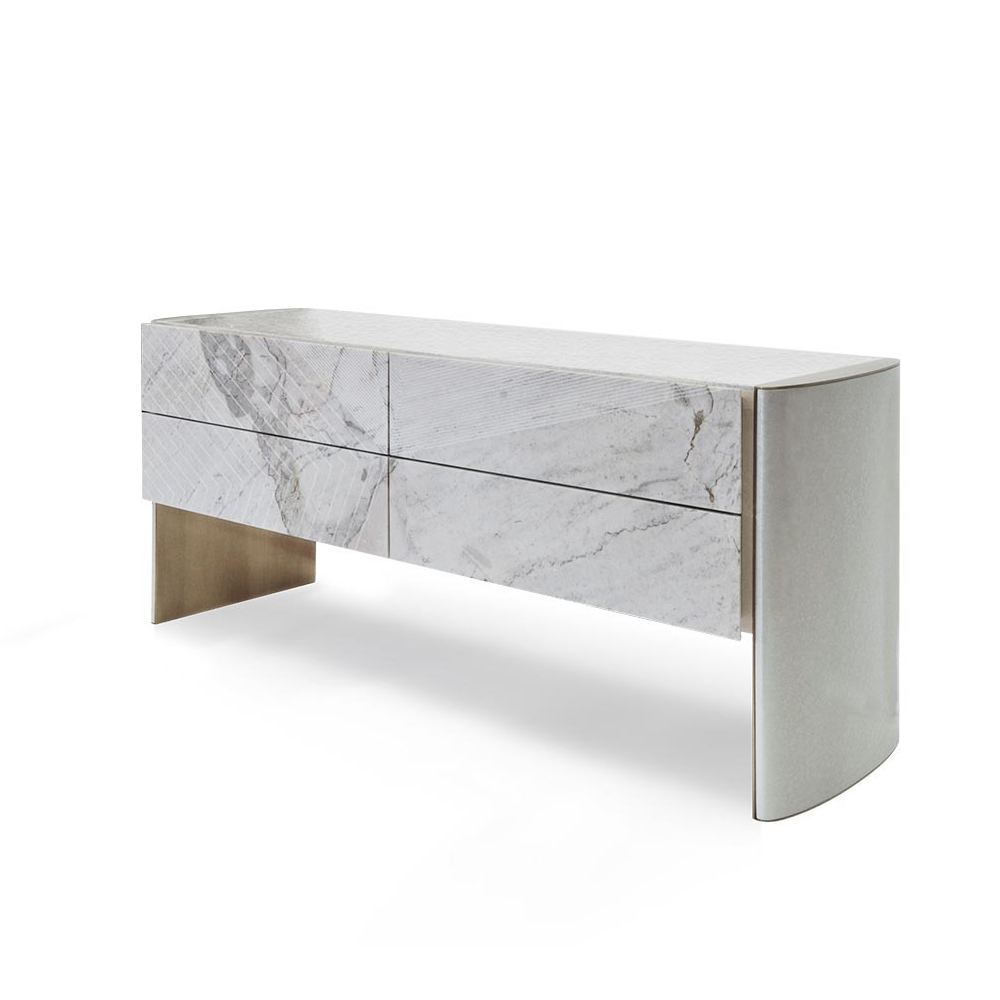 Эта удивительная тумба выполнена на основе прочной E1 плиты с высоким содержанием волокна, что обеспечивает надежность и долговечность. Поверхность из натурального мрамора придаёт изделию роскошный вид, а специализированная микрофибра и экологически чистая краска на водной основе делают её не только эстетически привлекательной, но и безопасной для вашего здоровья и окружающей среды.
