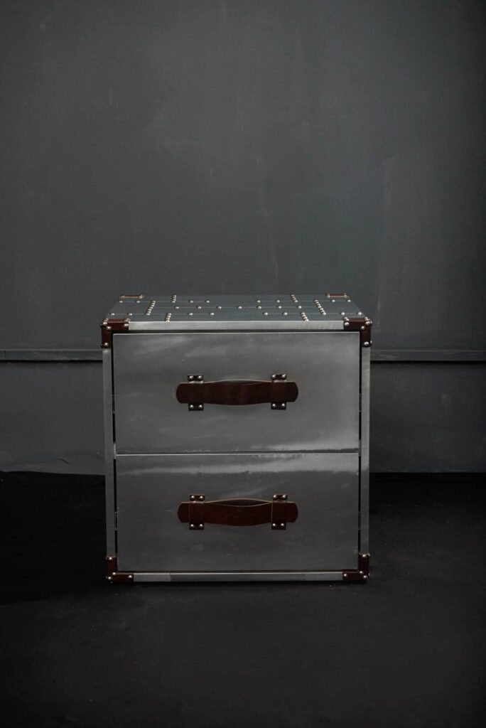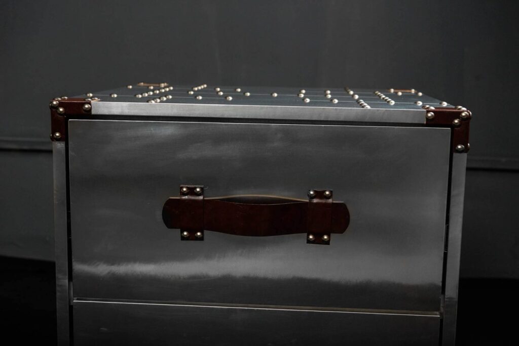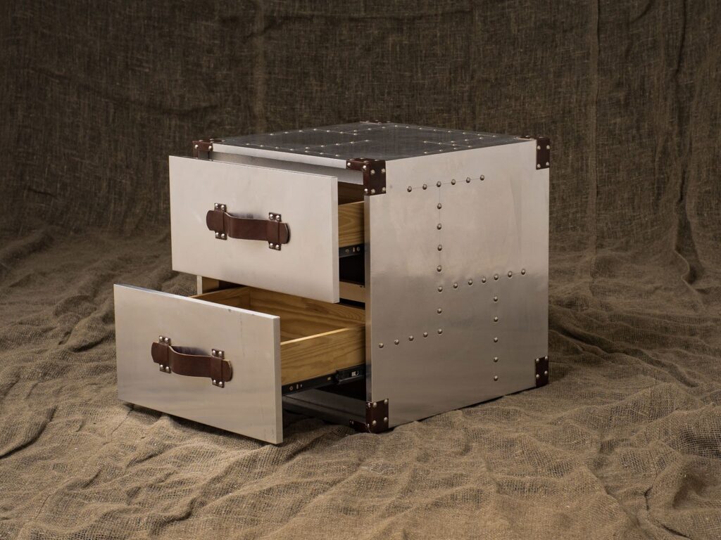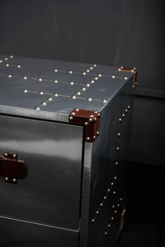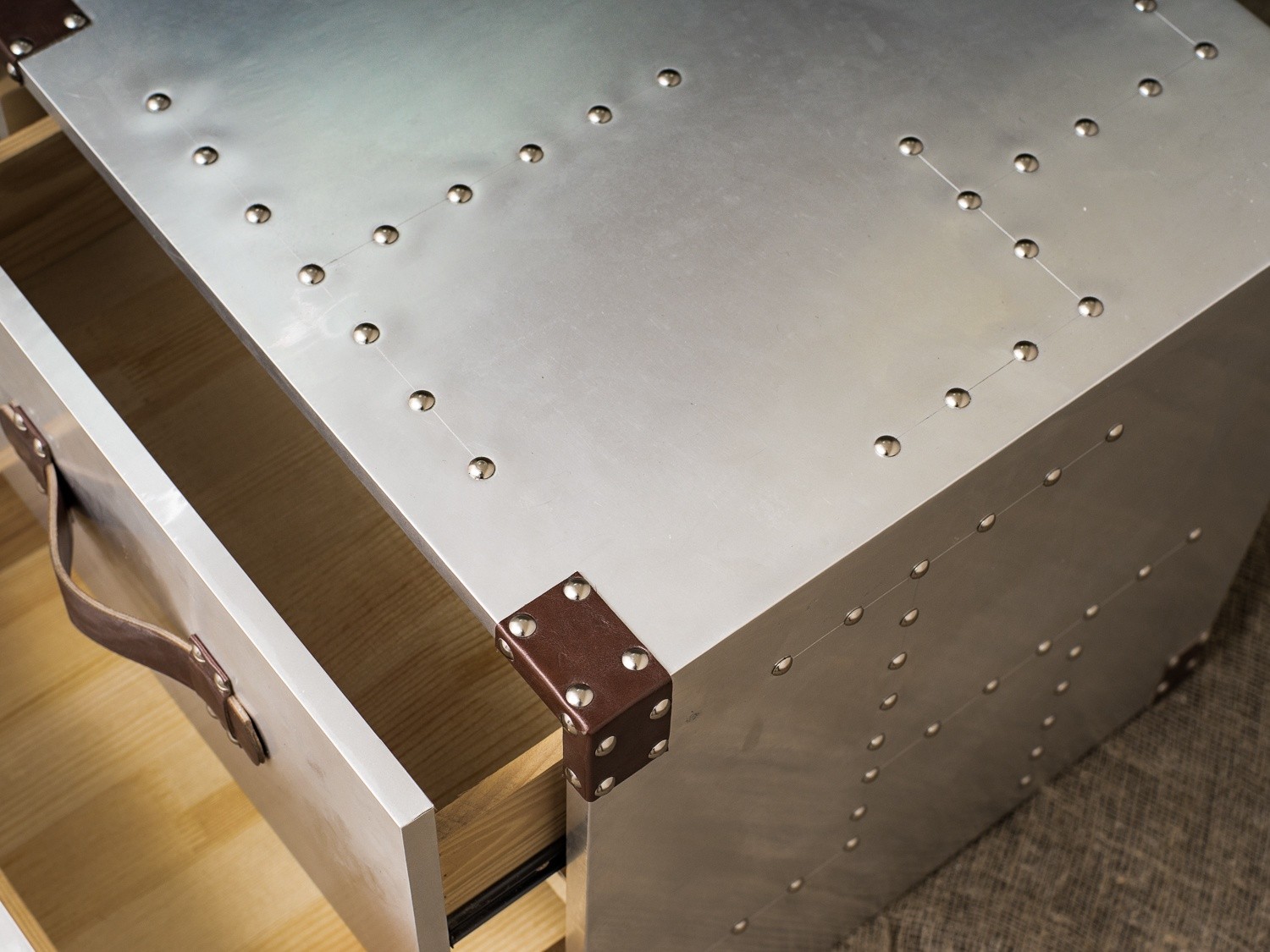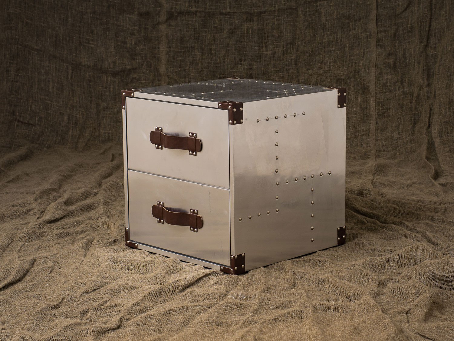 Деревянная тумба в форме чемодана — новый взгляд на старые вещи, позаимствованный у потомственного английского антиквара Тимоти Оултона. Сохраняя традиционные черты напольной тумбы, мы сделали ее практически неотличимой от старинных дорожных сундуков, которые брали в дальние морские путешествия. Представленная модель входит в коллекцию Aviator, посвященную грозному истребителю Spitfire королевской авиации Великобритании. Холодный металл и натуральная кожа, как ничто лучше, впишутся в брутальный лофт.