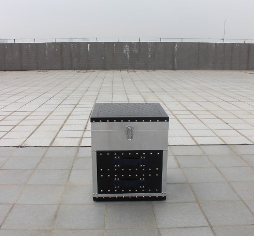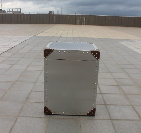 Тумба с декоративными кожаными вставками и металлическими клепками входит в коллекцию Aviator, посвященную легендарному военному самолету Великобритании. Вместо ручек для выдвижных ящиков мы использовали ремешки из натуральной кожи. В зависимости от пожеланий заказчика края и боковые стенки можем оббить кожаными вставками различного цвета. В обустройстве лофтового интерьера мягкая кожа и блестящий металл хорошо сочетаются с кирпичными или бетонными стенами.