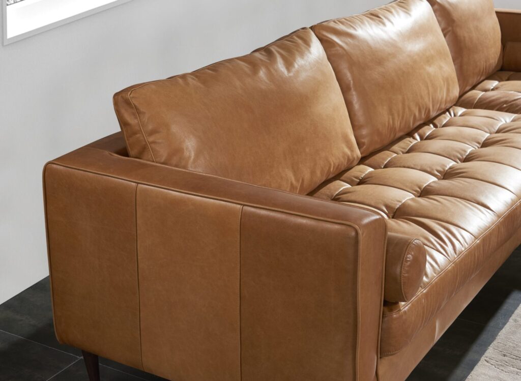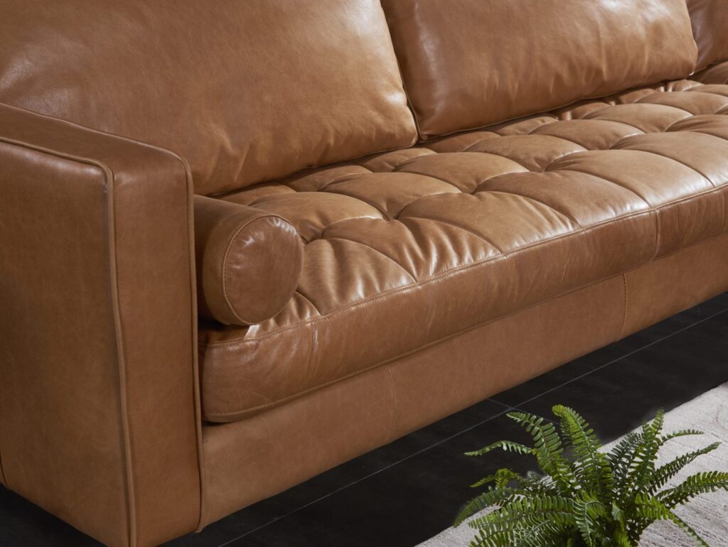 Диван Beaujolais изготовлен с использованием высококачественных материалов: прочный каркас из лиственницы обеспечивает надежность, а массивные деревянные ножки придают ему солидный вид. Обивка из коровьей кожи top grain добавляет роскоши и элегантности, а также легко очищается, что делает его идеальным выбором для активного использования.