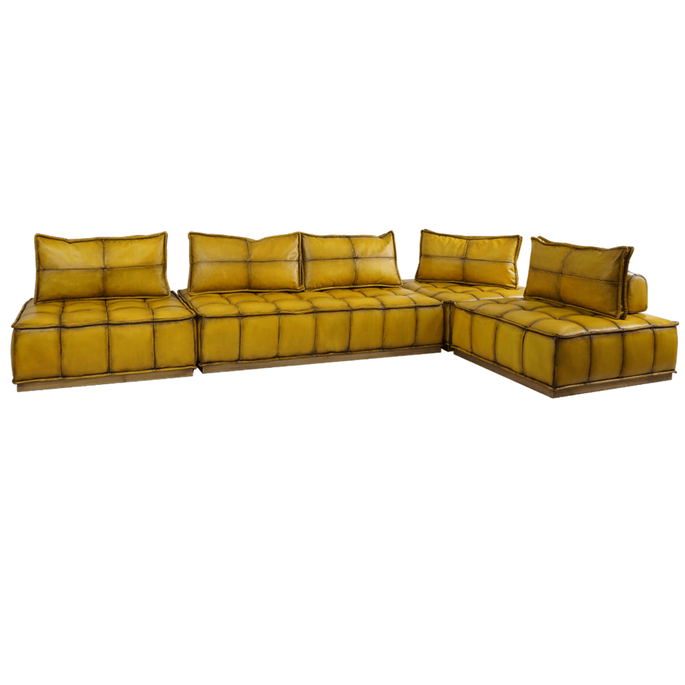 С каркасом из прочной лиственницы, диван обеспечивает надежную поддержку и долговечность. Оснащённый элегантной кожаной отделкой и обивкой, предложение сочетает в себе современность и классическую изысканность, позволяя вам насладиться максимальным комфортом.