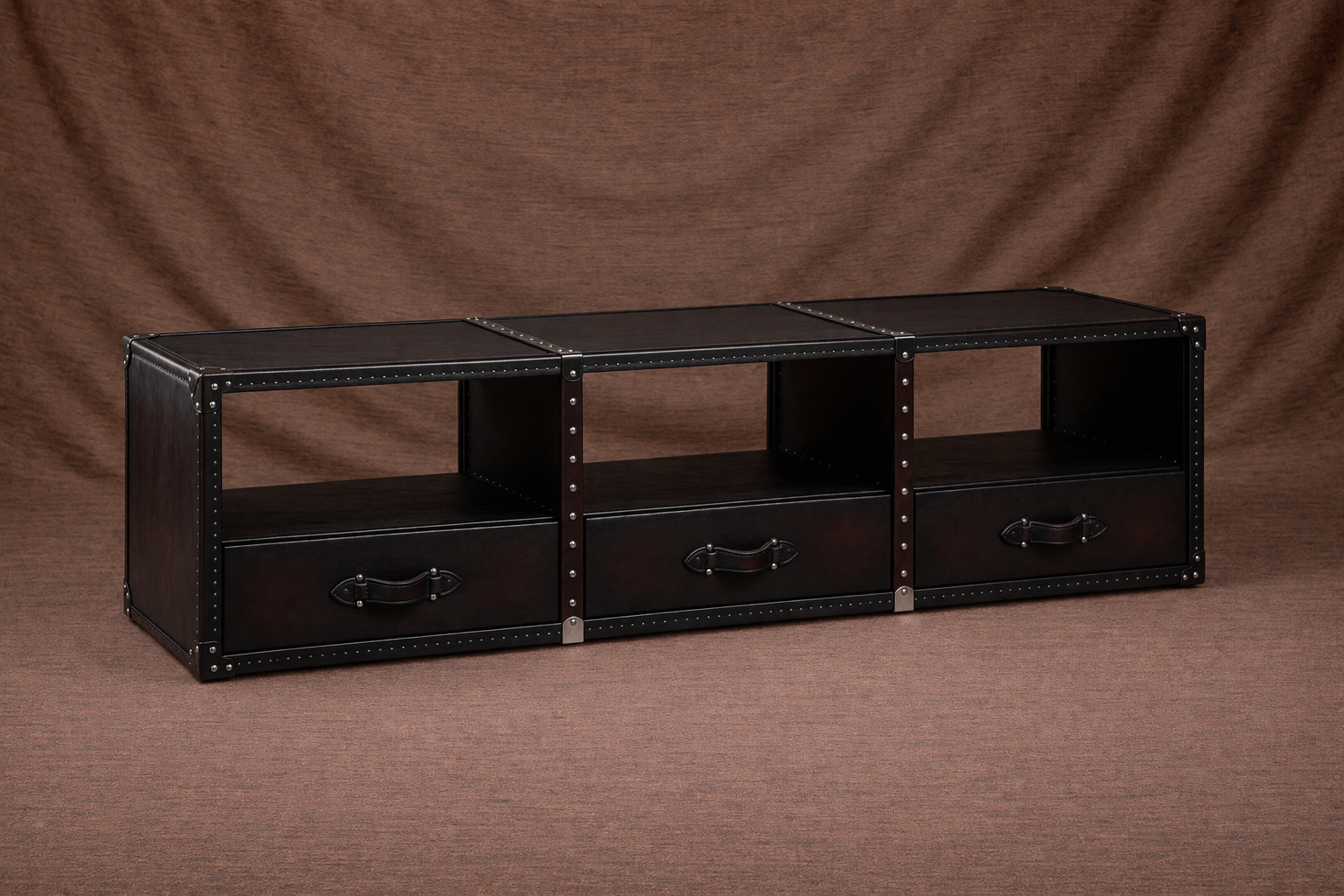 Изготовленный с прочным деревянным каркасом и роскошной PU-кожаной обивкой, он сочетает в себе стиль и функциональность. Элегантные планки из массива дерева придают ему характер и изысканность, а наполненный массивом дерева, шкаф обеспечивает надежное хранение ваших любимых вин и коллекционных напитков.