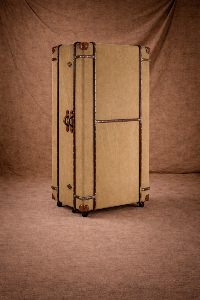 Изготовленный из тщательно отобранных материалов, винный шкаф поражает своей продуманной конструкцией. Каркас выполнен из прочного дерева, обитого полотном, что придаёт ему характерный вид. Элегантные детали отделки из кожи и латуни подчеркивают его уникальность и придают роскошь вашему пространству. Массивные деревянные планки гарантируют долговечность, а мягкая тканевая подкладка заботится о хранении ваших любимых бутылок.