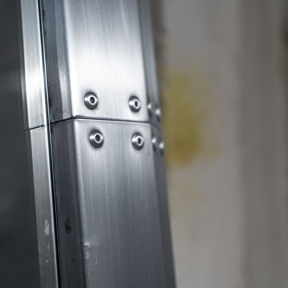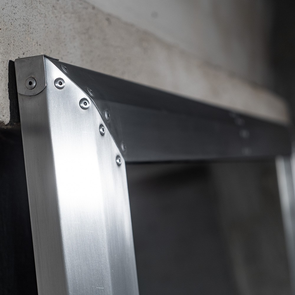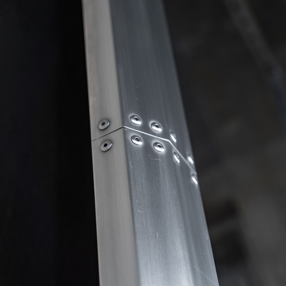 Простая прямоугольная конструкция из алюминия с типичными клепками по периметру придает изделию яркий стилистический акцент, харизму и узнаваемость.